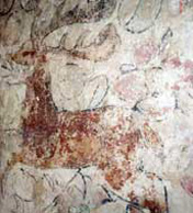 At some point in the past, the paintings had been covered and forgotten. With the covering partly removed, it was possible to see that at least one wall was completely covered with paintings between the timber-frames. There were six panels depicting a hunting scene. However, due to financial constraints, the paintings were again covered over.